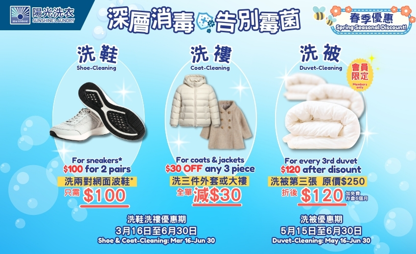 陽光洗衣|專業乾洗・即日磅洗・改衣修補